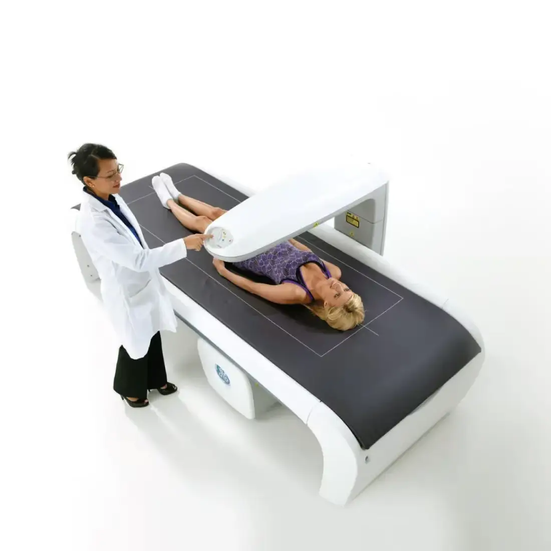 Sistema de Densitometria Óssea por Raio-X com tecnologia “FAN-BEAM” com baixa dose de radiação, modelo de mesa longa. Projetado para fazer medidas e oferecer a indicação do risco de fratura relativo a osteoporose, diagnosticando e monitorando as alterações ósseas.