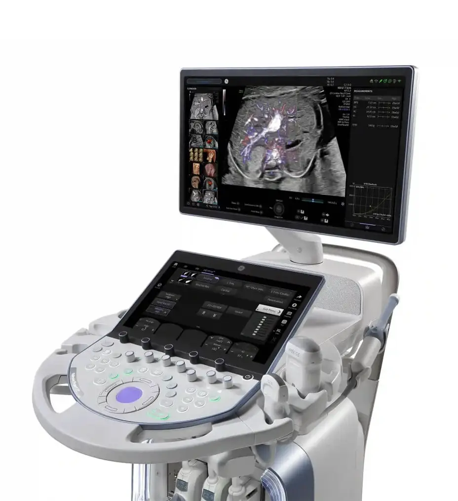 Inteligência Artificial Integrada: O sistema conta com ferramentas como o SonoLyst, que reconhece e confirma automaticamente a anatomia fetal, e o fetalHS, que simplifica a avaliação cardíaca fetal complexa.